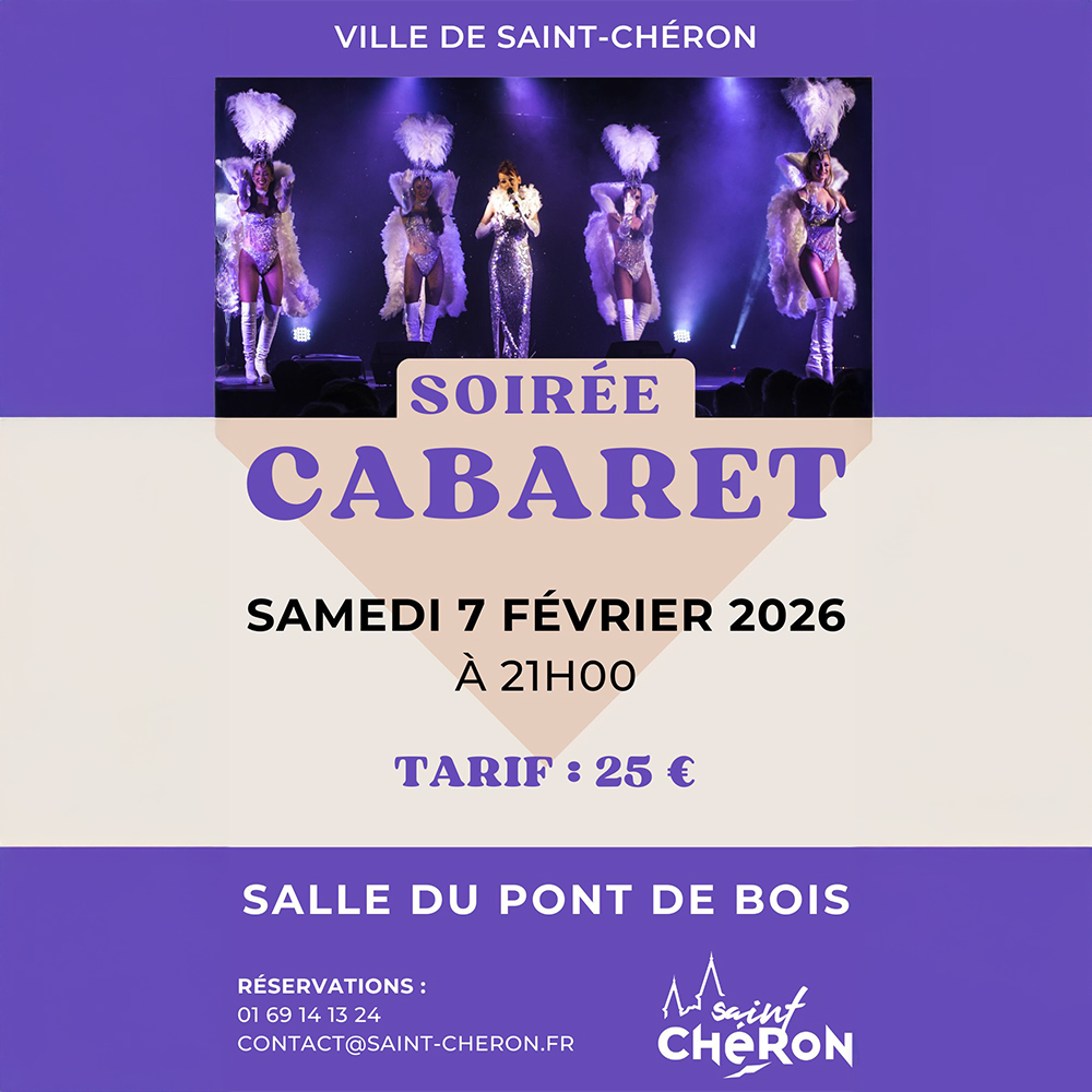 La Ville de Saint-Chéron vous invite à une soirée d’exception placée sous le signe de l’élégance et du spectacle. Retrouvez l’univers envoûtant du cabaret lors d’une représentation unique alliant chant, danse et performances scéniques.