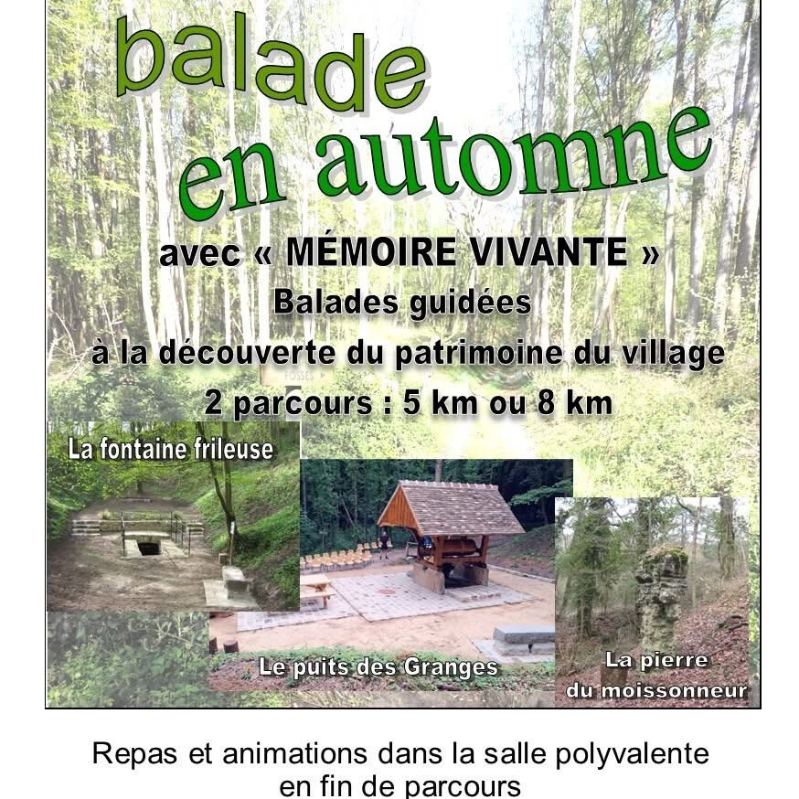 L’association Mémoire Vivante organise sa balade automnale ! Au programme : un parcours de 5 ou 8 kilomètres au choix pour découvrir le patrimoine des Granges-le-Roi suivi d’un repas convivial avec animations à la salle des fêtes.