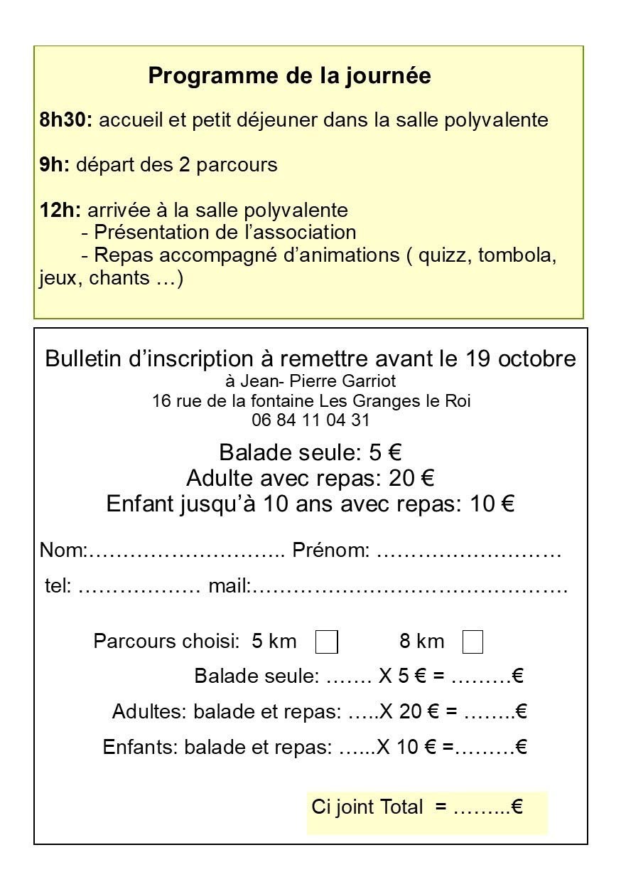L’association Mémoire Vivante organise sa balade automnale ! Au programme : un parcours de 5 ou 8 kilomètres au choix pour découvrir le patrimoine des Granges-le-Roi suivi d’un repas convivial avec animations à la salle des fêtes.
