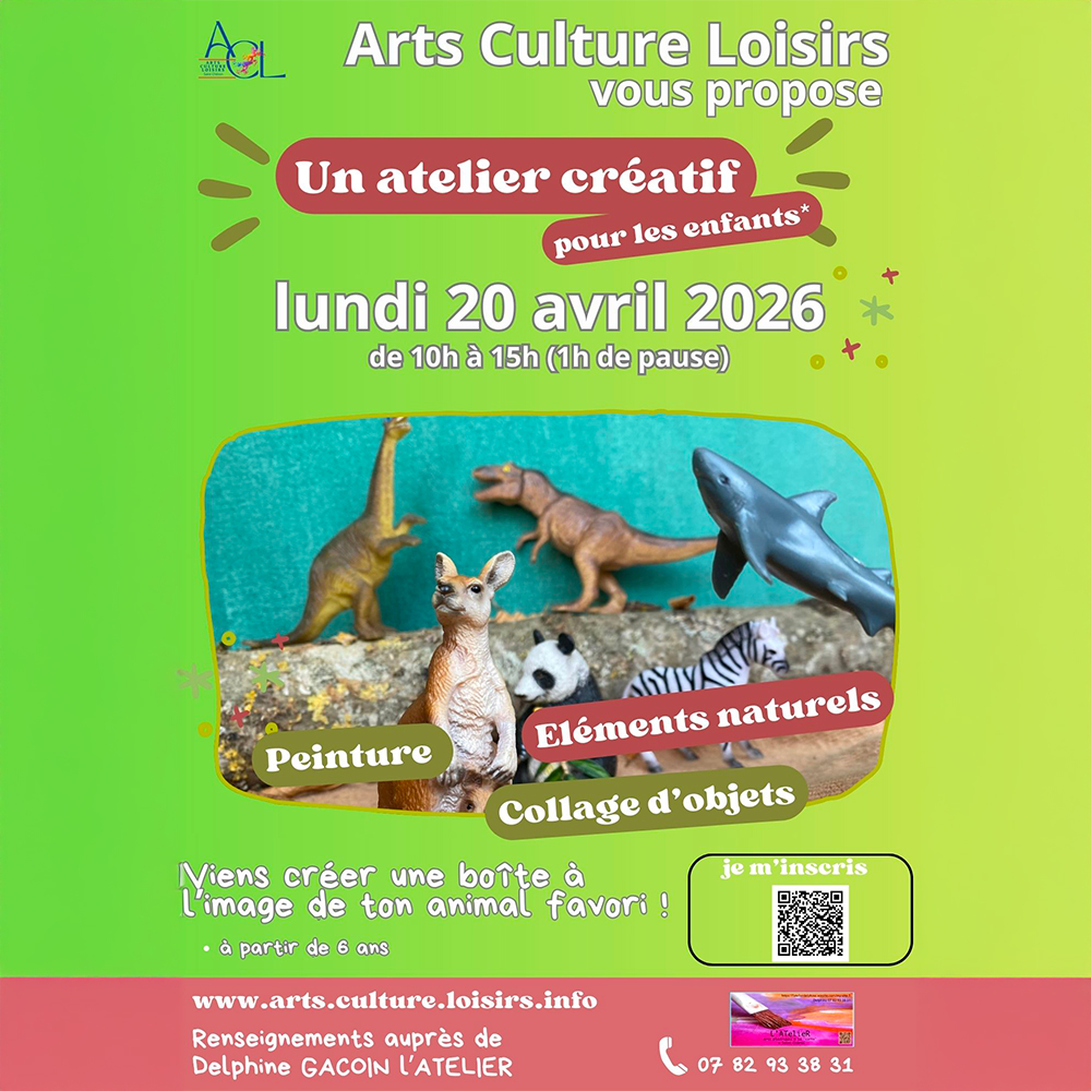 L’association Arts Culture Loisirs invite les enfants dès 6 ans à une journée d’immersion artistique le lundi 20 avril 2026.