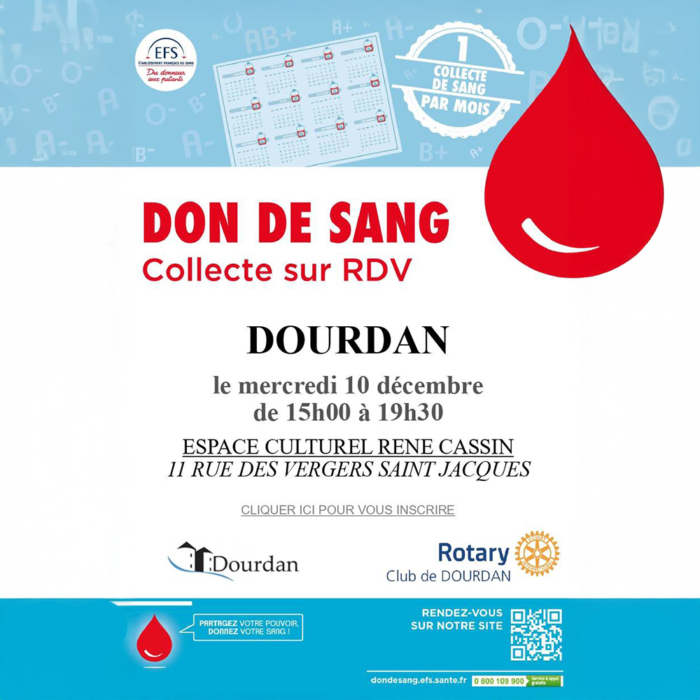 Sans plus attendre, inscrivez-vous à la collecte de sang qui aura lieu le mercredi 10 décembre, à Dourdan :