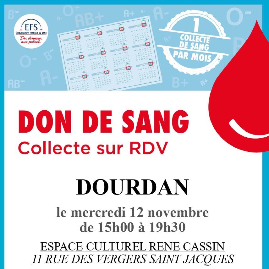 Sans plus attendre, inscrivez-vous à la collecte de sang qui aura lieu le mercredi 12 novembre, à Dourdan :
